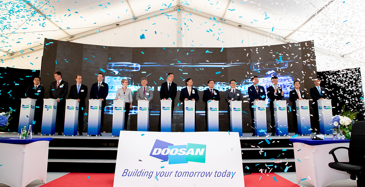 In that ceremony, Szijjártó Péter(Hungarian Minister of Foreign Affairs and Trade), Gyusik Choi(Korea ambassador to Hungary), Hyeonu Dong(Vice chairman of Doosan Corporation) and Yoonsuk Lee (CEO of Solus Advanced Materials co., Ltd.) participated.