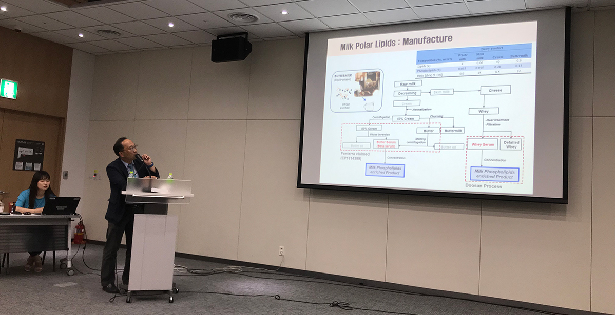 Doosan corporation sponsored an industry-academic symposium at the '2019 Korea Food Science Society International Conference' held at Songdo Convensia in Incheon for three days from June 26, 2019, and introduced new functional phospholipids related to preventive foods.